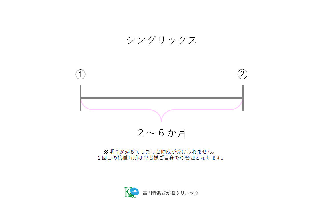 シングリックス:2回(➀②に間隔は2~6か月)